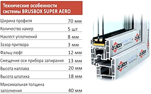 В нашем ассортименте представлены 2 профиля окон ПВХ от Brusbox: AERO и SUPER AERO с высоким уровнем теплоизоляции. Благодаря стеклопакетам от производителя можно сэкономить на обогреве помещений в холодное время года, ведь из-за своей толщины они не пропускают холод в дом или квартиру. Окно ПВХ защищает пространство не только от ветра, осадков и мороза зимой, но и от жары летом. Поэтому окна из ПВХ Брусбокс идеально подходят для использования в наших климатических условиях.