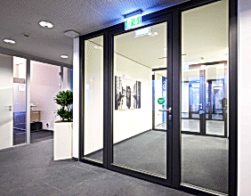 Противопожарная конструкция хорошо подойдёт не только для жилого дома, но и для официального учреждения или офиса. Она полностью соответствует требованиям пожарной безопасности, поэтому у пожарной инспекции не возникнет никаких вопросов и не стоит бояться ставить такие двери в общественных зданиях. Естественно, для частных и Pin-Up домов данный тип дверей вообще будет наиболее подходящим вариантом. Если фасад дома сделан из алюминиевого профиля, то алюминиевую конструкцию в нем установить проще, чем даже в обычный дверной проём в здании, где стены сделаны из бетона или кирпича.