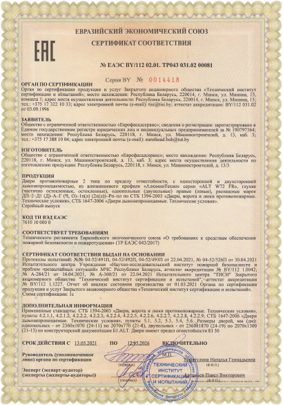 Предел огнестойкости дверных конструкций | EI-30 |